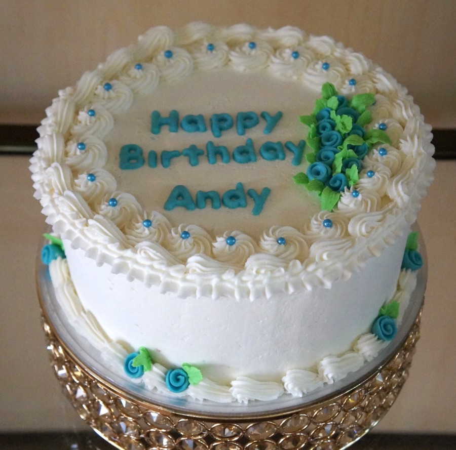 8″ Cake flavour of your choice with fondant flower accents and lettering.
