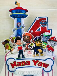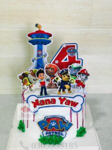 Two flavours/ two layered whipped cream cake with card Paw Patrol 3D glitter  toppers