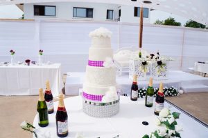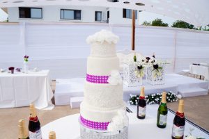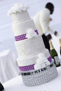 4 tier wedding cake. 4 falvours of choice- vanilla, chocolate, strawberry, fruit cake